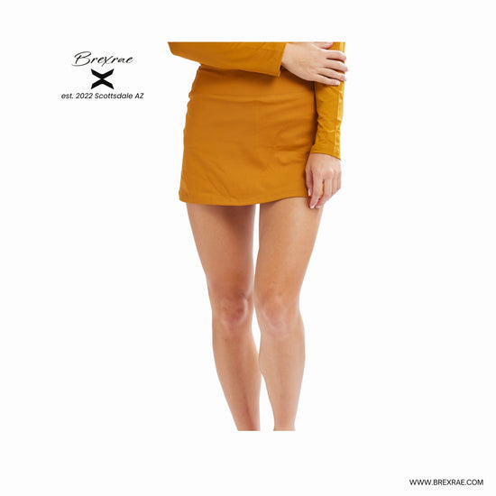 Complete your active look with the Brexrae X-Solid Mustard High Skort, a women’s performance piece that blends style and practicality. This 13-inch high-waisted skort features a vibrant mustard yellow hue, offering a bold yet versatile addition to your golf or casual wardrobe. Made with a stretchy, breathable fabric, it provides a flattering fit with the freedom to move, perfect for sports or everyday wear. The high-waisted design ensures added coverage and comfort, while the iconic Brexrae "X" branding reflects the brand’s Scottsdale, AZ heritage since 2022. Pair it with the matching Brexrae X-Solid Mustard Long Sleeve for a coordinated ensemble that’s as functional as it is eye-catching.