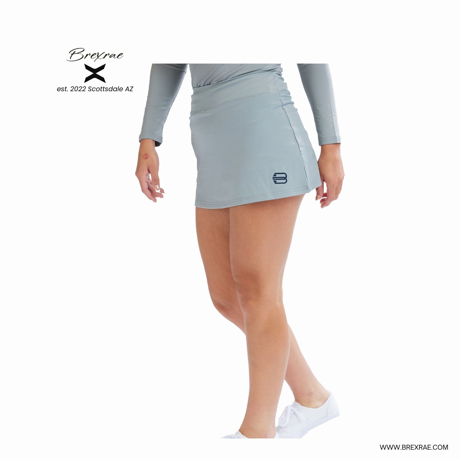 X-Solid Silky Grey High-Waisted Skort