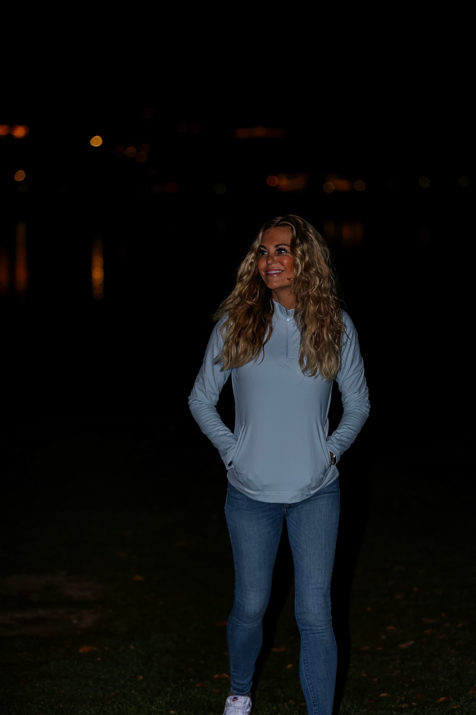 Engineered from premium nylon and spandex blend, this three-quarter zip delivers lightweight performance without compromising durability. The streamlined design moves with you, while strategically placed side pockets provide convenient storage for essentials—whether you're warming your hands or securing personal items. Perfect for layering or standalone wear, this navy staple transitions seamlessly from active pursuits to everyday comfort.
