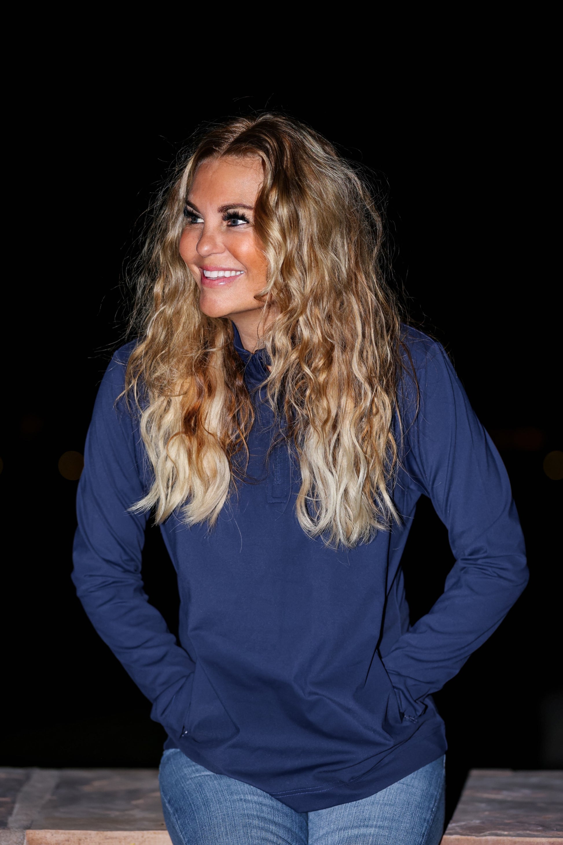 Engineered from premium nylon and spandex blend, this three-quarter zip delivers lightweight performance without compromising durability. The streamlined design moves with you, while strategically placed side pockets provide convenient storage for essentials—whether you're warming your hands or securing personal items. Perfect for layering or standalone wear, this navy staple transitions seamlessly from active pursuits to everyday comfort.